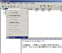 ①Becky!を起動し、左ペインのメールボックスを選択し、右クリックしてプロパティを選択します。