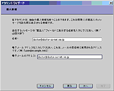 ③「個人情報」画面で「名前」および「電子メールアドレス」にエイリアスアドレスを指定します。