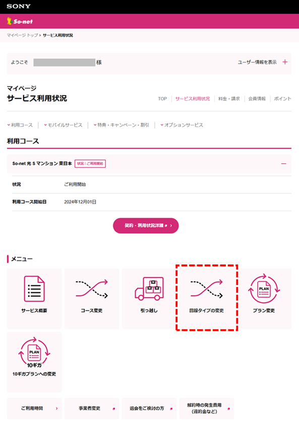 ※回線タイプ変更完了後の契約期間、解約金については「So-net 光 プラス」の仕様に準じます。
