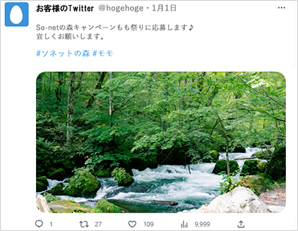 ②Twitterで、ハッシュタグ「#ソネットの森」「#モモ」をつけて、植物の画像を添付して投稿する