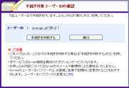 「手続き対象ユーザーIDの確認画面」が表示されますので画面を確認し、間違いがなければ「実行」ボタンをクリックします。