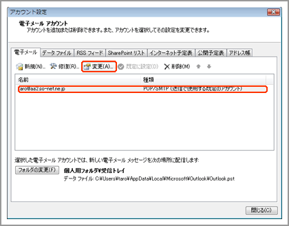 設定をするメールアドレスのアカウントを選択して、[変更]をクリックしてください。