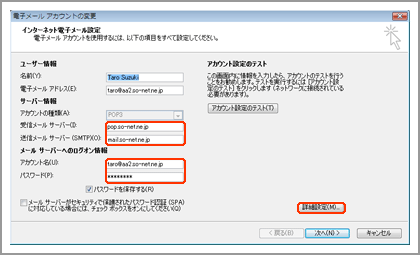 | パスワード | 「(お客さまのメールアドレスパスワード)」 |