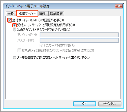 | 受信メールサーバーと同じ設定を使用する | 選択します。 |