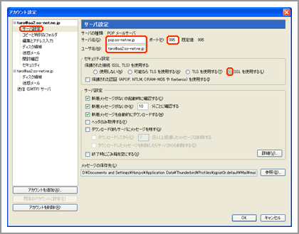 | サーバ名 | 「pop.so-net.ne.jp」 |