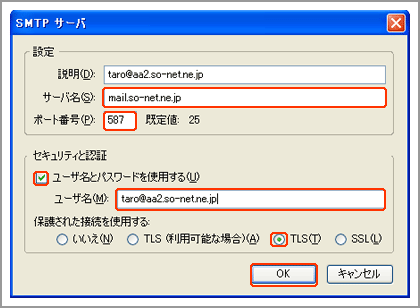 | サーバ名 | 「mail.so-net.ne.jp」 |