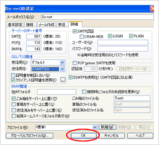 | SMTP認証 | チェックして、「PLAIN」をチェックしてください。また、「CRAM-MD5」のチェックを外してください。 |