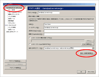 - プラスメールアドレスサービスで取得したメールアドレスを送信メールアドレスとする場合、メールソフトの送信者設定を変更する必要があります。設定方法を、実際の画面に沿ってご説明します。