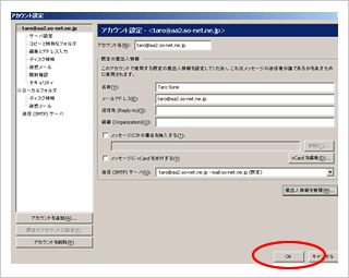 [OK]ボタンをクリックしてください。以上で、Thunderbird 2.0のメール送信設定は完了です。