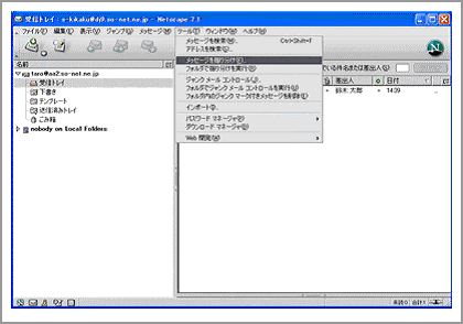 Netscapeによるメール振り分け方法についてご説明します。(Netscape 7.1を例としてご説明します。)