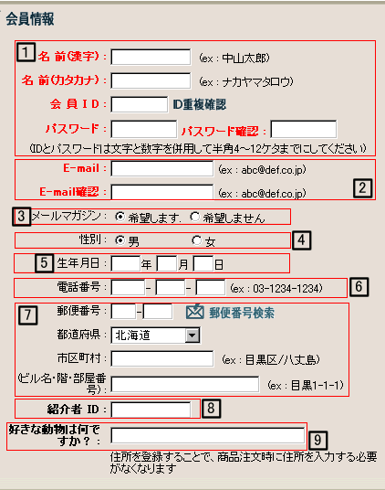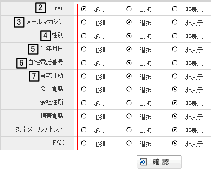 会員登録時にお客さまに記入していただく会員登録フォームの項目を設定することができます。