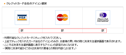 上記のチェックボックスにチェックを入れたカードブランドがカード決済を行う際に表示されます。