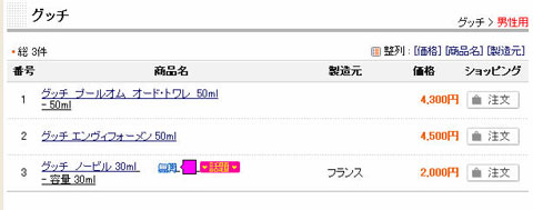 上の(3)の商品を保存して反映させると、下記のように順序が反映されます。