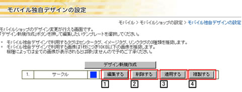 モバイルショップ作成 > モバイルショップの設定 > モバイル 独自デザインの設定