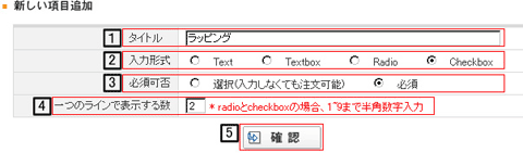 「Radio」と「Checkbox」を選択した場合のみ選択内容を登録することができます。