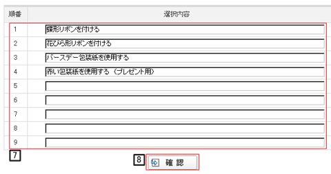 - ・「Checkbox」はチェックボックスを表示することで、1~9の選択の中から複数を選択させることができます。