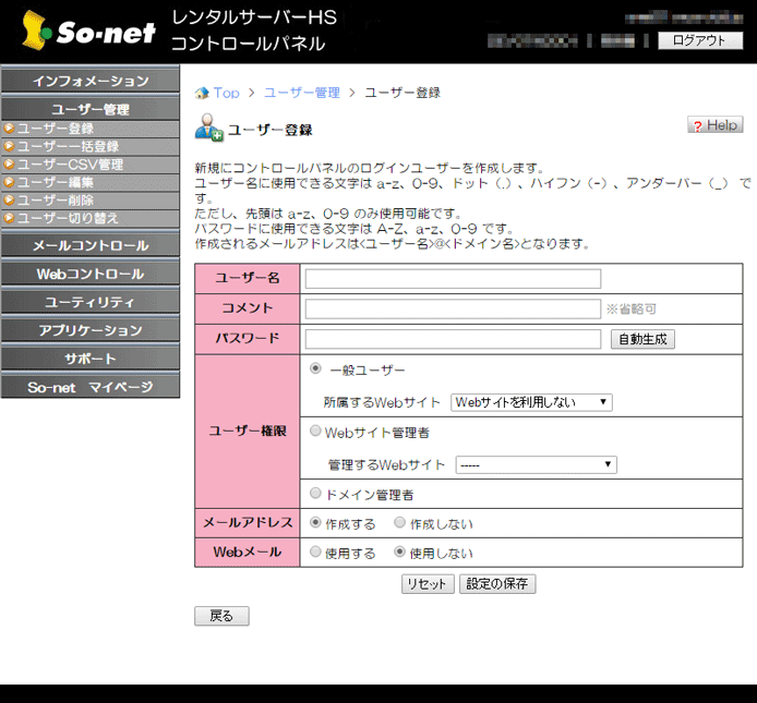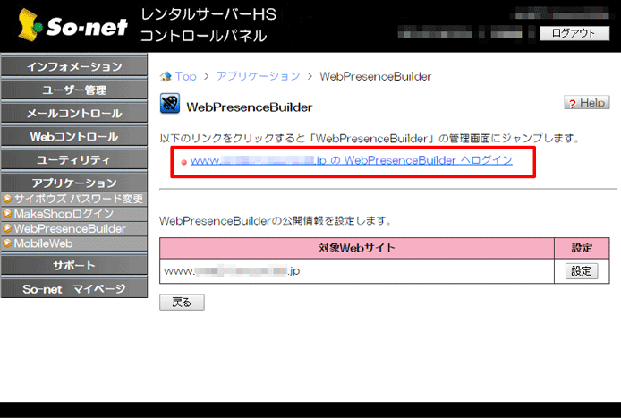 So-netトップ » オプションサービス » So-net レンタルサーバーHS » オンラインマニュアル » Web Presence Builder 初期設定