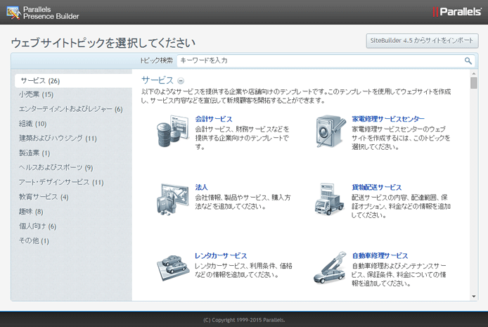 コントロールパネルでの事前準備から、Web Presence Builderでのアカウント設定までを行います。